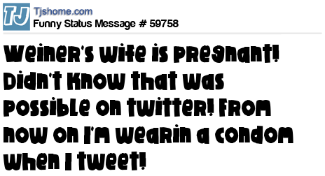 X says Weiner's wife is pregnant! Didn't know that was possible on twitter! From now on I'm wearin a condom when I tweet!