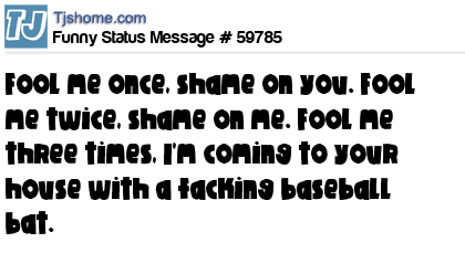 X Fool me once, shame on you. Fool me twice, shame on me. Fool me three times, I'm coming to your house with a facking baseball bat.