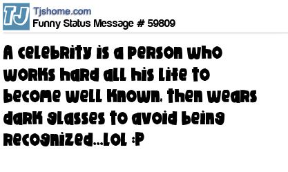 X A celebrity is a person who works hard all his life to become well known, then wears dark glasses to avoid being recognized...lol :P