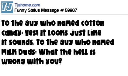 X is To the guy who named cotton candy: Yes! It looks just like it sounds. To the guy who named Milk Duds: What the hell is wrong with you?