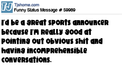 - # 59991 I'd be a great sports announcer because I'm really good at pointing out obvious sh*t and having incomprehensible conversations.