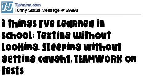 X 3 things I've learned in school: Texting without looking, Sleeping without getting caught, TEAMWORK on tests