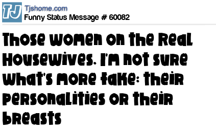 X is Those women on the Real Housewives. I'm not sure what's more fake: their personalities or their breasts