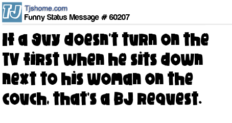 X  If a guy doesn't turn on the TV first when he sits down next to his woman on the couch, that's a BJ request.