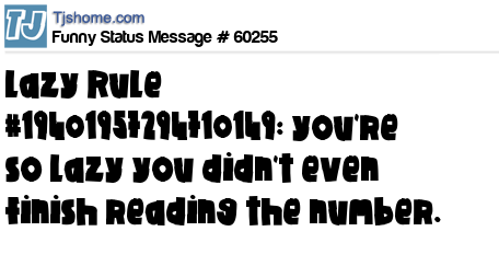 X is Lazy Rule #19401957294710149: you're so lazy you didn't even finish reading the number.
