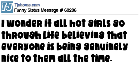 X says I wonder if all hot girls go through life believing that everyone is being genuinely nice to them all the time.