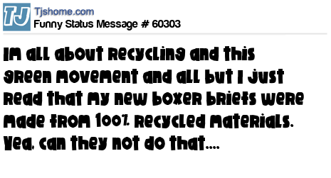 X Im all about recycling and this green movement and all but I just read that my new boxer briefs were made from 100% recycled materials. Yea, can they not do that....