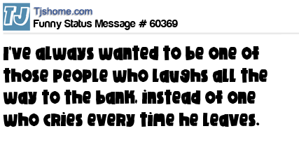 - # 172869 I've always wanted to be one of those people who laughs all the way to the #bank, instead of one who cries every time he leaves.
