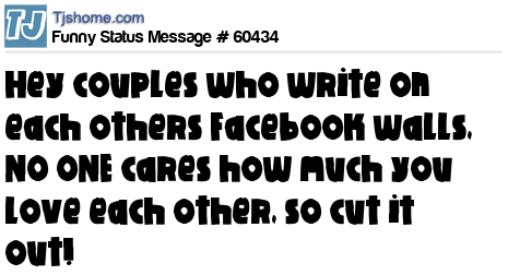 X  Hey couples who write on each others Facebook walls, NO ONE cares how much you love each other, so cut it out!
