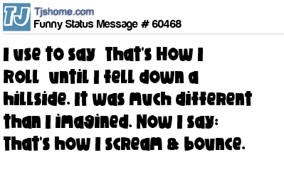 X I use to say “That's How I Roll” until I fell down a hillside. It was much different than I imagined. Now I say: That's how I scream & bounce.