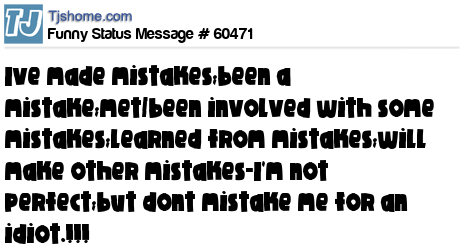 X says Ive made mistakes;been a mistake;met/been involved with some mistakes;learned from mistakes;will make other mistakes-I'm not perfect;but dont mistake me for an idiot.!!!