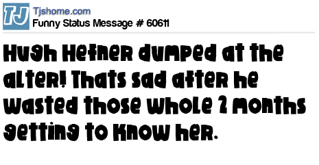 X is Hugh Hefner dumped at the alter! Thats sad after he wasted those whole 2 months getting to know her.