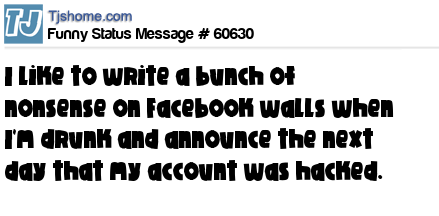 - # 157881 I like to go on drunk facebook post binges, then claim the next day that someone hacked my account.