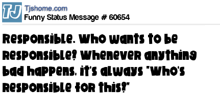 X  Responsible. Who wants to be responsible? Whenever anything bad happens, it's always "Who's responsible for this?"