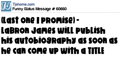 X is (last one I promise) - LaBron James will publish his autobiography as soon as he can come up with a TITLE