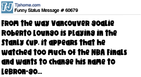 X From the way Vancouver goalie Roberto Loungo is playing in the Stanly Cup, it appears that he watched too much of the NBA Finals and wants to change his name to LeBron-go...