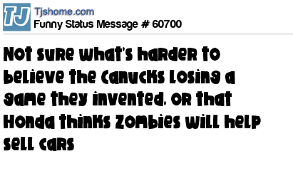 X says Not sure what's harder to believe the Canucks losing a game they invented, or that Honda thinks Zombies will help sell cars