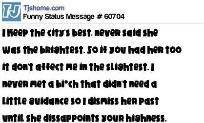 - # 39242 #891... you didnt inbox me a number but I've always wanted to say this to you. Your depressing posts piss me off to no end! You need a haircut, I dont think he loves you anymore either, and I really dont give a Shi! what adorable trick your cat did today!
