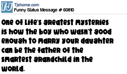 X says one of life's greatest mysteries is how the boy who wasn't good enough to marry your daughter can be the father of the smartest grandchild in the world.
