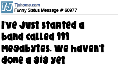 - # 149600 I started a band called 999 Megabytes..... We haven’t gotten a gig yet.