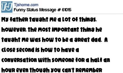 X says My father taught me a lot of things, however, the most important thing he taught me was how to be a great dad. A close second is how to have a conversation with someone for a half an hour even though you can't remember their name or anything else