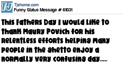 X is This Fathers Day I would like to thank Maury Povich for his relentless efforts helping many people in the ghetto enjoy a normally very confusing day.....