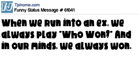 X is When we run into an ex, we always play "Who Won?" And in our minds, we always won.