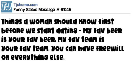 X is Things a woman should know first before we start dating - My fav beer is your fav beer, My fav team is your fav team, you can have freewill on everything else.