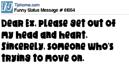 X Dear Ex, please get out of my head and heart. Sincerely, someone who`s trying to move on.