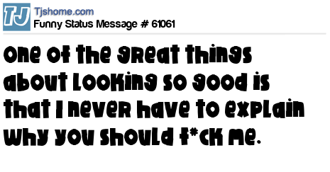 X One of the great things about looking so good is that I never have to explain why you should f*ck me.