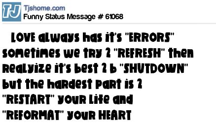 X ♥ LOVE always has it`s ``ERRORS`` sometimes we try 2 ``REFRESH`` then realyize it`s best 2 b ``SHUTDOWN`` but the hardest part is 2 ``RESTART`` your life and ``REFORMAT`` your HEART ♥