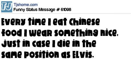 X Every time I eat Chinese food I wear something nice, just in case I die in the same position as Elvis.