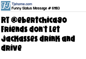 X says RT @ebertchicago Friends don't let jackasses drink and drive