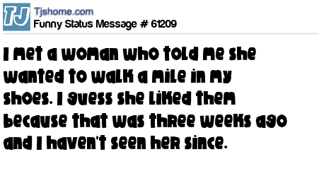 X is I met a woman who told me she wanted to walk a mile in my shoes. I guess she liked them because that was three weeks ago and I haven't seen her since.