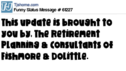 X says this update is brought to you by, The Retirement Planning & Consultants of Fishmore & Dolittle.