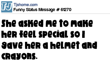 - # 137253 My girlfriend just asked me to make her feel special. So I gave her a helmet and a box of crayons.