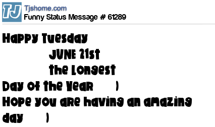 X Happy Tuesday ❤═════❤JUNE 21st ❤═════❤the Longest Day of the Year✿◠‿◠) Hope you are having an amazing day✿◠‿◠)