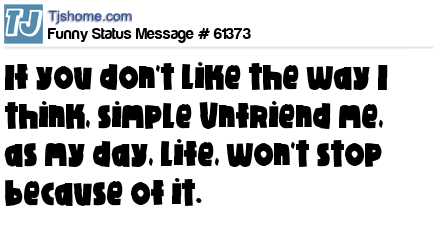 X says If you don't like the way I think, simple Unfriend me, as my day, life, won't stop because of it.