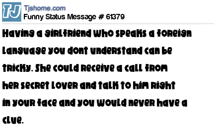 X is Having a girlfriend who speaks a foreign language you dont understand can be tricky. She could receive a call from her secret lover and talk to him right in your face and you would never have a clue.
