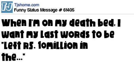 X When I'm on my death bed, I want my last words to be "Left rS. 10million in the..."