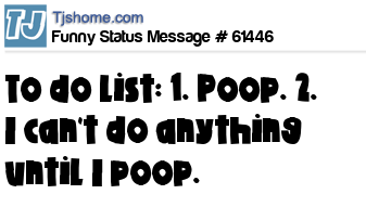 X To do list: 1. Poop. 2. I can't do anything until I poop.