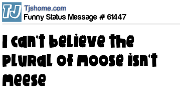 - # 108914 If the plural for goose is geese, why isn't the plural for moose meese?