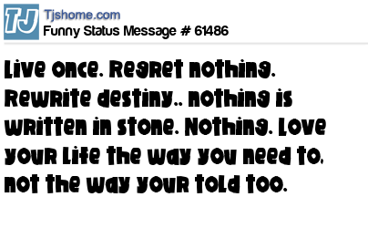 - # 67151 You only live once. Have fun, enjoy life to the fullest, do what you want and don't look back, smile, love somebody. live for the future, not the past. Life is too short to be p!ssed off all the time!