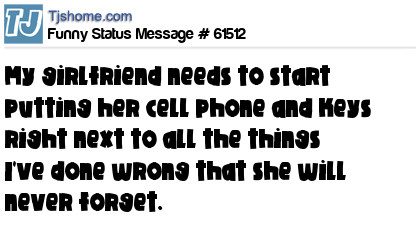 X My girlfriend needs to start putting her cell phone and keys right next to all the things I've done wrong that she will never forget.