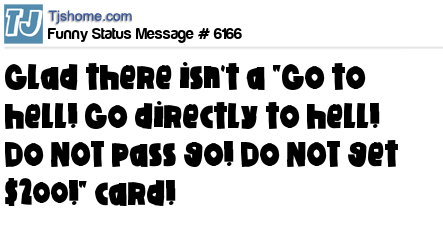 X is glad there isn't a "Go to hell! Go directly to hell! Do NOT pass go! Do NOT get $200!" card!