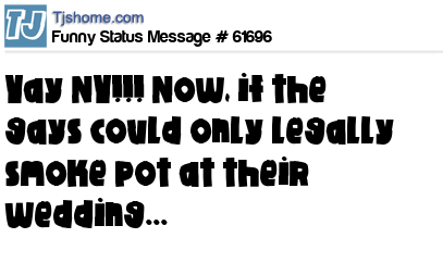 X is Yay NY!!! Now, if the gays could only legally smoke pot at their wedding...