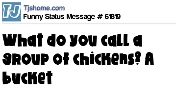 - # 63973 I recommend you chickens learn to talk. Nobody ever said, "Let's go get a bucket of parrot."