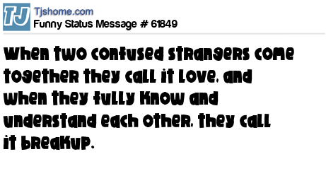 X is When two confused strangers come together they call it love, and when they fully know and understand each other, they call it breakup.