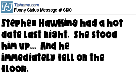 X Stephen Hawking had a hot date last night. She stood him up... And he immediately fell on the floor.