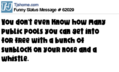X is You don't even know how many public pools you can get into for free with a bunch of sunblock on your nose and a whistle.